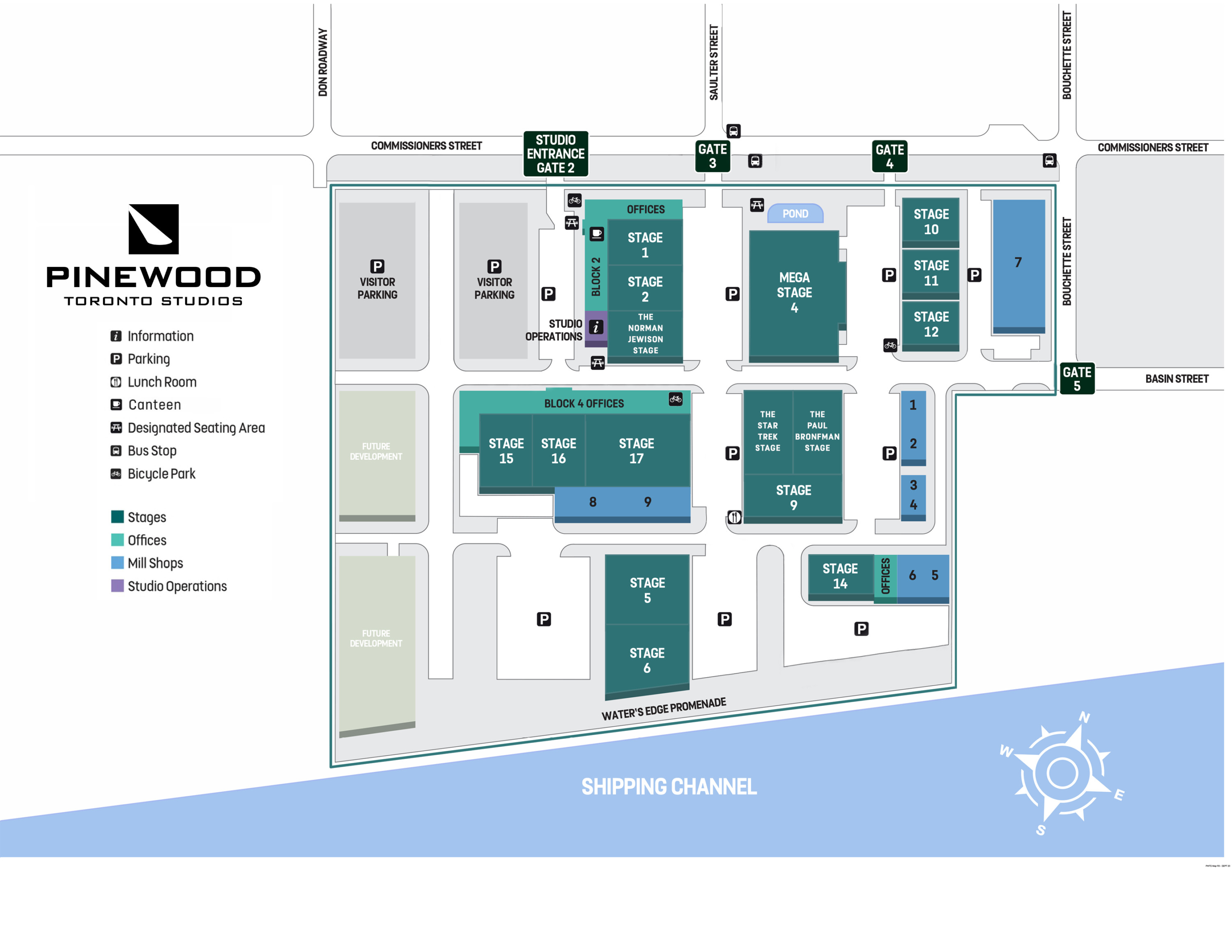 The Star Trek Stage was newly named in 2024 to celebrate one of the franchise’s long-running filming locations. Star Trek: Discovery had been based at Pinewood Toronto Studios since 2017 shooting all five seasons, where sets built included the Ready Room and International Federation HQ.